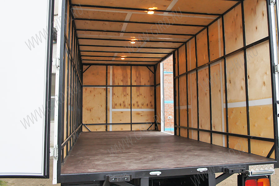 При необходимости данный тип фургона может быть утеплён. В качестве утеплителя используется стиропен. В качестве материала придающего жесткость используется влагостойкая фанера (4 мм).