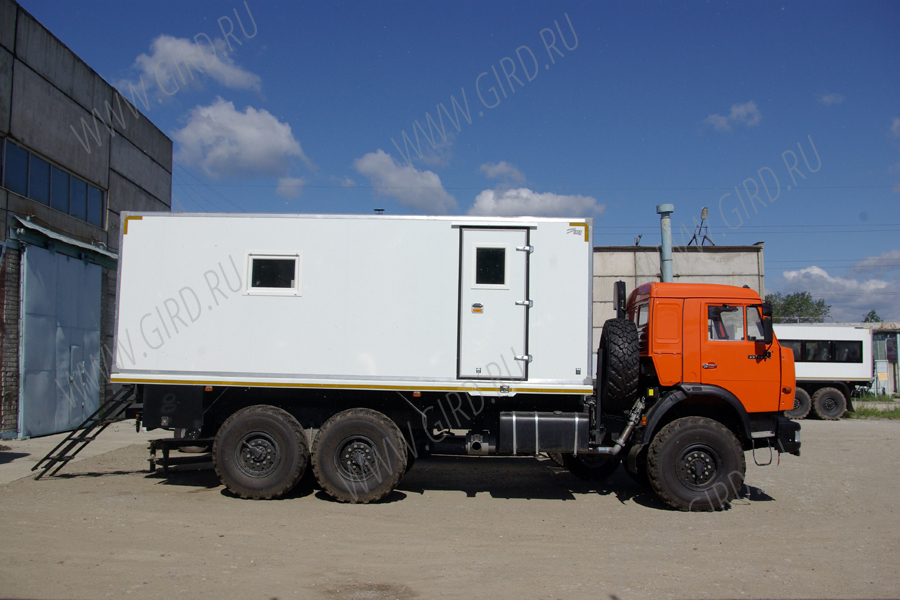 - Лаборатория размещается на базе довольно распространённых шасси автомобилей КАМАЗ-43114 или Урал-43203, оснащённых просторным кузовом панельной конструкции.