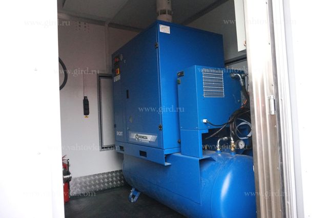 Мобильный автономный контейнер предназначен для проведения ТО спецтехники в условиях умеренного климата при температуре окружающей среды от -45°С до +40°С. Контейнер утеплен, установлено оборудование промышленной серии для раздачи масел, установлен компрессор производительностью 2200 л/мин. Количество и назначение постов для проведения ТО: