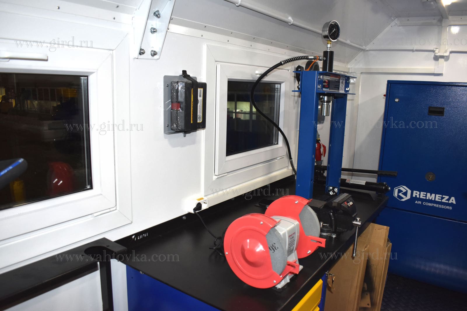 Передвижная мастерская ПАРМ с бортовой платформой Урал 4320-6952-72Е5И06М3 на шасси Урал 4320-6952-72Е5И06М3. Фургон изготовлен из 5слойных сэндвич-панелей собственного производства. Крано-манипуляторная установка Palfinger РК-6500А.