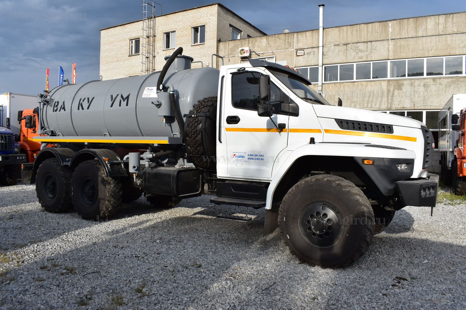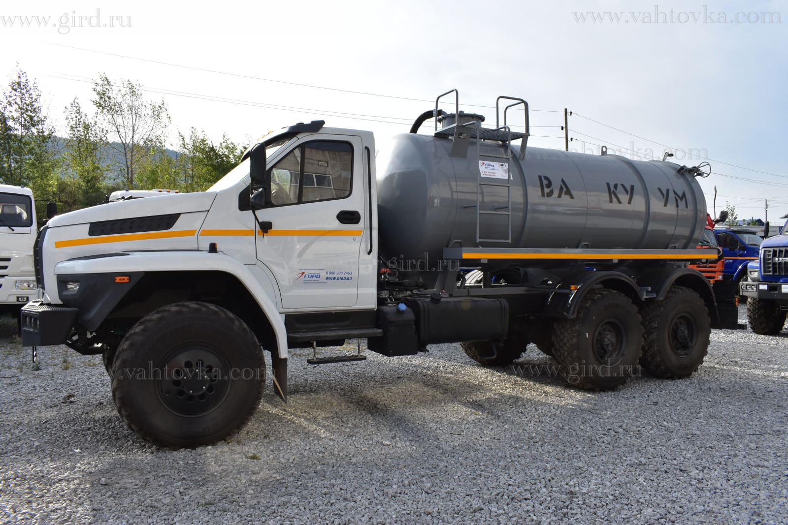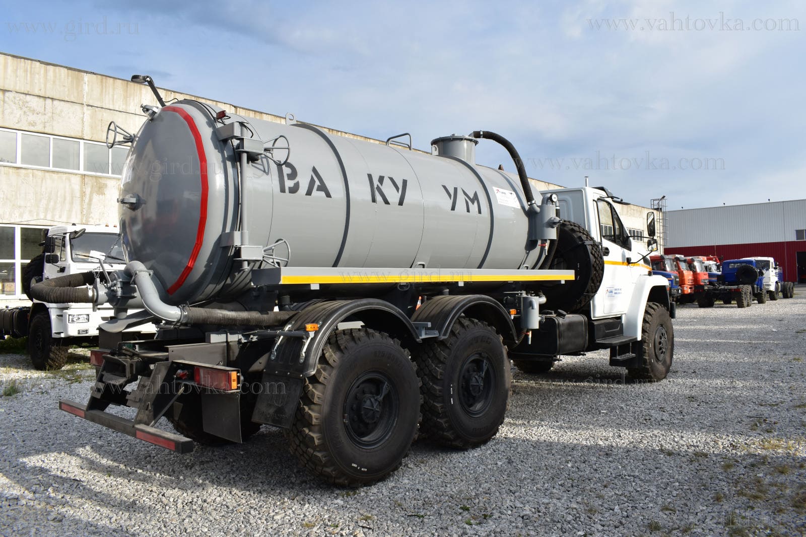 МВ-10 на шасси Урал Next 4320-6952-72, 6х6. Автоцистерна вакуумная предназначена для вакуумной очистки выгребных ям, транспортировки сточных масс к местам утилизации, а также для механизированного заполнения, транспортировки и выгрузки любых технических жидкостей.