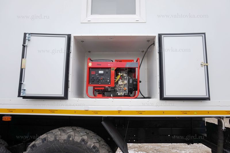 Дизель-генератор Ranger RDG 3000E (2,8кВт, 220В) в нише с двухстворчатой дверью для обслуживания. |