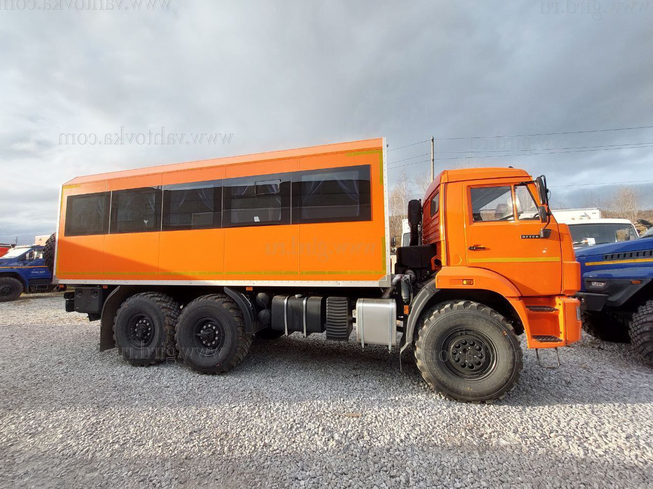Вахтовый автобус на шасси Камаз. 22 пассажирских мест в салоне + 2 в кабине. Фургон автобуса изготовлен из сэндвич-панелей по бескаркасной технологии фургоностроения.
