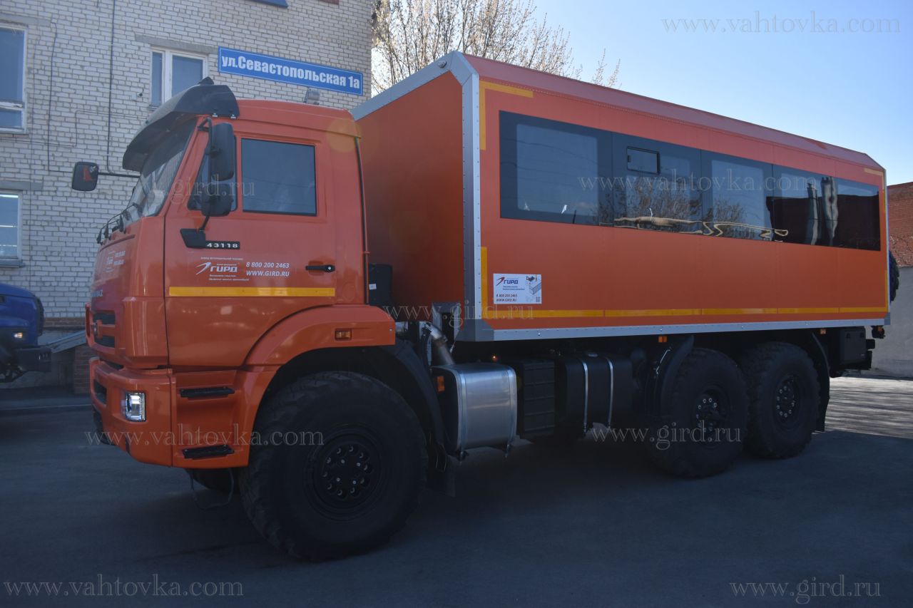 Завод "ГИРД" предлагает купить Вахтовый автобус на шасси Камаз 43118-50 от производителя с доставкой по всей России. Подробнее по телефону 8(800)200-24-63